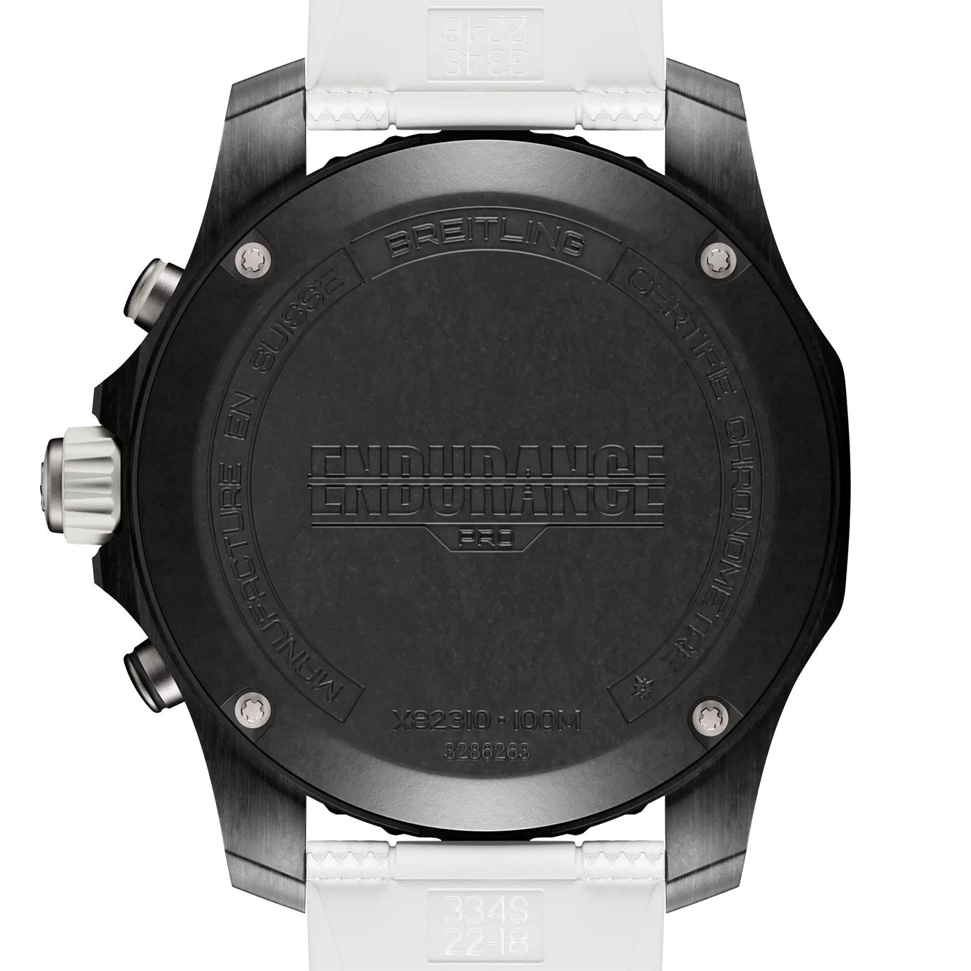 Introducing the Breitling Endurance Pro 44—a timepiece that masterfully combines precision, durability, and vibrant design. Tailored for athletes and adventurers, this watch features a thermocompensated SuperQuartz™ movement encased in ultra-light Breitlight®, ensuring exceptional accuracy and comfort. The black dial is complemented by a striking white rubber strap, creating a bold aesthetic suitable for any occasion. With a bidirectional compass scale bezel and water resistance up to 10 bars, the Endurance Pro 44 is designed to perform under pressure, whether you’re navigating the great outdoors or the urban jungle.