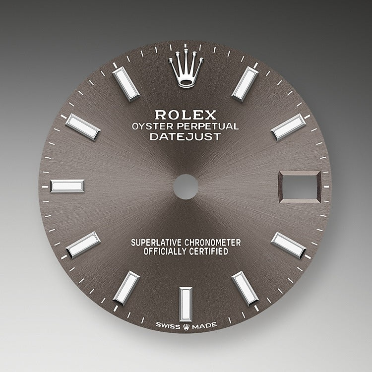 - Dial color: Dark grey dial with a fine sunray and Indexes as hour markers of 18k White Gold with luminous fill