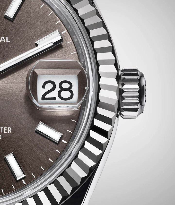 - Crystal: Scratch-resistant sapphire, Cyclops lens over the date