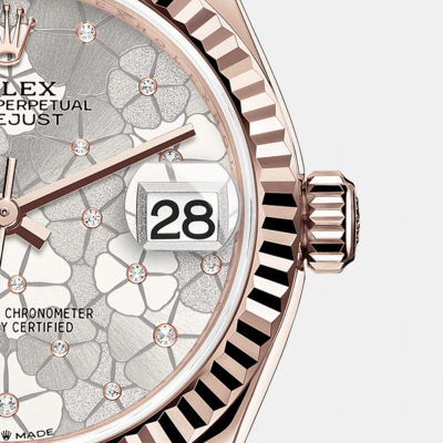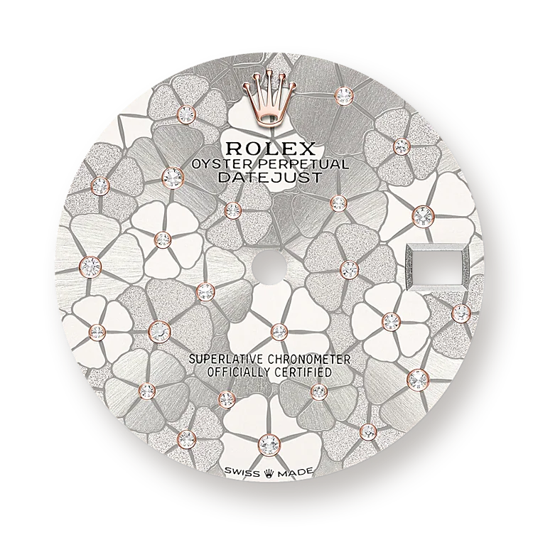 - Dial color: Silver dial with floral motif and 24 Diamonds in 18k Everose Gold settings