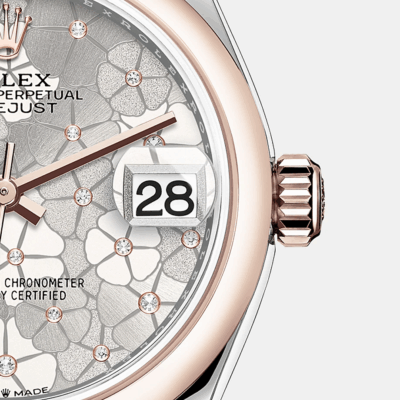 - Dial color: Silver dial with floral motif and 24 Diamonds in 18k Everose Gold settings