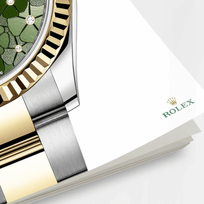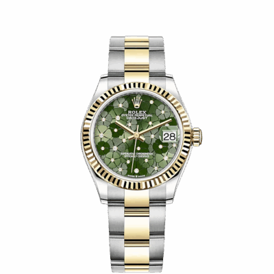 - Dial color: Olive green dial with floral motif and 24 Diamonds in 18k Yellow Gold settings