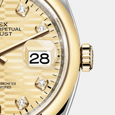 - Case material: Yellow Rolesor – combination of Oystersteel and 18k Yellow Gold
