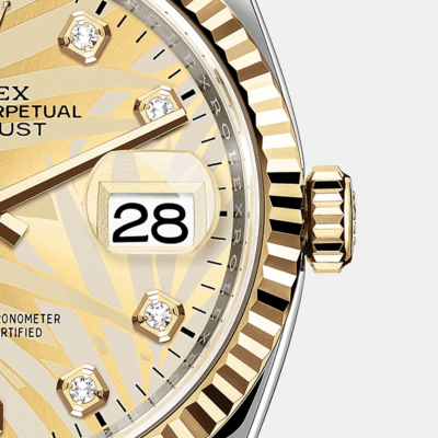 - Case material: Yellow Rolesor – combination of Oystersteel and 18k Yellow Gold