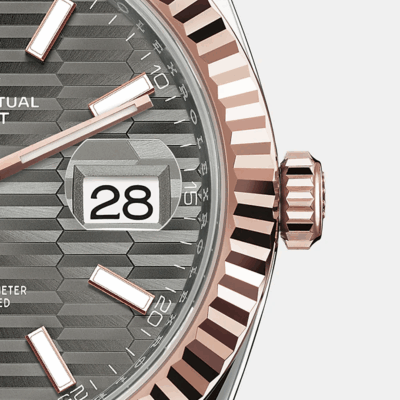 - Dial color: Slate dial fluted motif and Indexes of 18k Everose Gold with luminous fill as hour markers