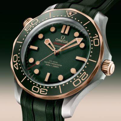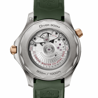 Introducing a stunning, unworn watch OMEGA Seamaster Diver 300M, embodied in the model Ref# 210.92.42.20.10.001 continues its storied journey beneath the waves—this time with a sleek, contemporary twist on its iconic design. Since its debut in 1993, the Seamaster Diver 300M has captured the spirit of ocean exploration, earning a devoted global following. This 42 mm model is a striking fusion of grade 2 titanium and OMEGA’s exclusive 9K Bronze Gold, blending strength with distinctive elegance. Its green oxalic anodized aluminium bezel showcases a diving scale illuminated by vintage Super-LumiNova, giving the watch a timeless, heritage-inspired glow. The sandblasted green aluminium dial continues the theme, adorned with PVD 18K Bronze Gold hands and blackened indexes, all generously filled with vintage Super-LumiNova for optimal visibility. Light brown and red transfers add a subtle yet refined contrast, including the OMEGA logo. Crafted for the depths and designed for clarity, this timepiece is equipped with a domed, scratch-resistant sapphire crystal, offering exceptional durability while maintaining a pristine view of the dial. The crystal also features an anti-reflective coating on the inner surface, minimizing glare and enhancing legibility in all lighting conditions. A helium release valve is seamlessly integrated into the case, ensuring the watch remains uncompromised during professional saturation dives. This essential feature protects the integrity of the timepiece under extreme pressure, making it a true companion for deep-sea explorers. Beneath the surface, the watch is powered by the OMEGA Co-Axial Master Chronometer Calibre 8806 with beating at 25,200 vph, with 35 jewels and a 55-hour power reserve, visible through the sapphire-crystal caseback and certified for outstanding precision, magnetic resistance, and performance by METAS. Completing the look is a Green Rubber strap with secure Titanium Foldover clasp, merging classic dive-watch heritage with a modern, ergonomic feel. Built for precision, designed for adventure and comfortable for everyday wear, the Seamaster Diver 300M, water resistant to 300 meters, remains a legend in every sense.