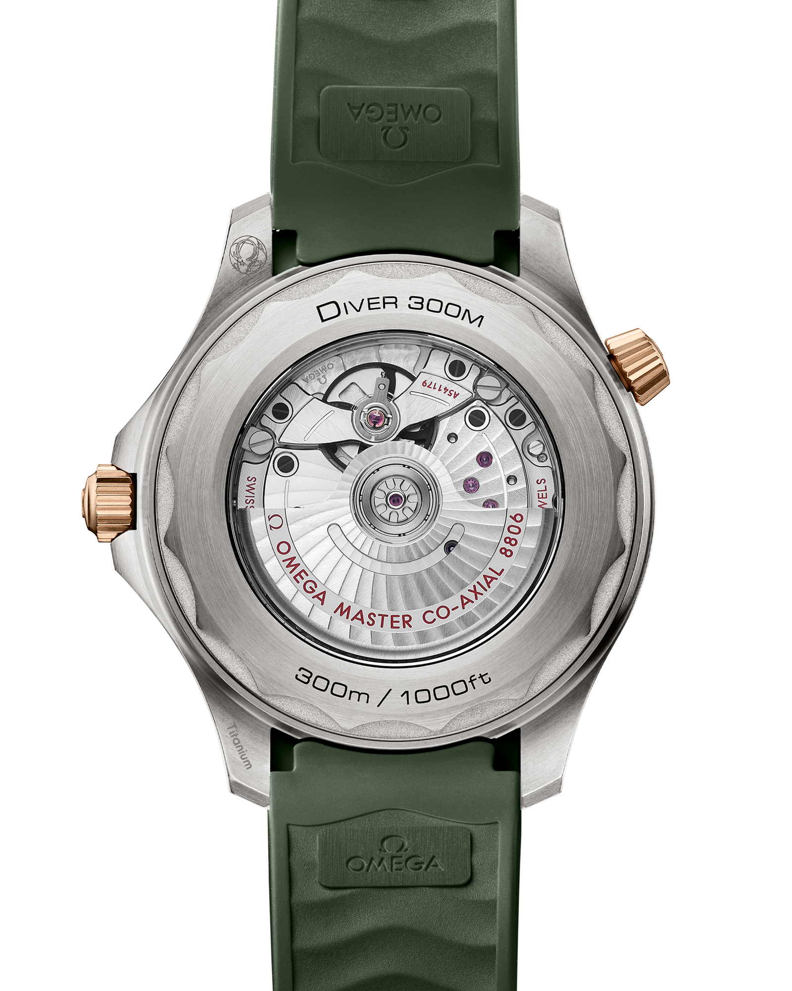 - Case material: Grade 2 titanium and OMEGA’s exclusive 9K Bronze Gold